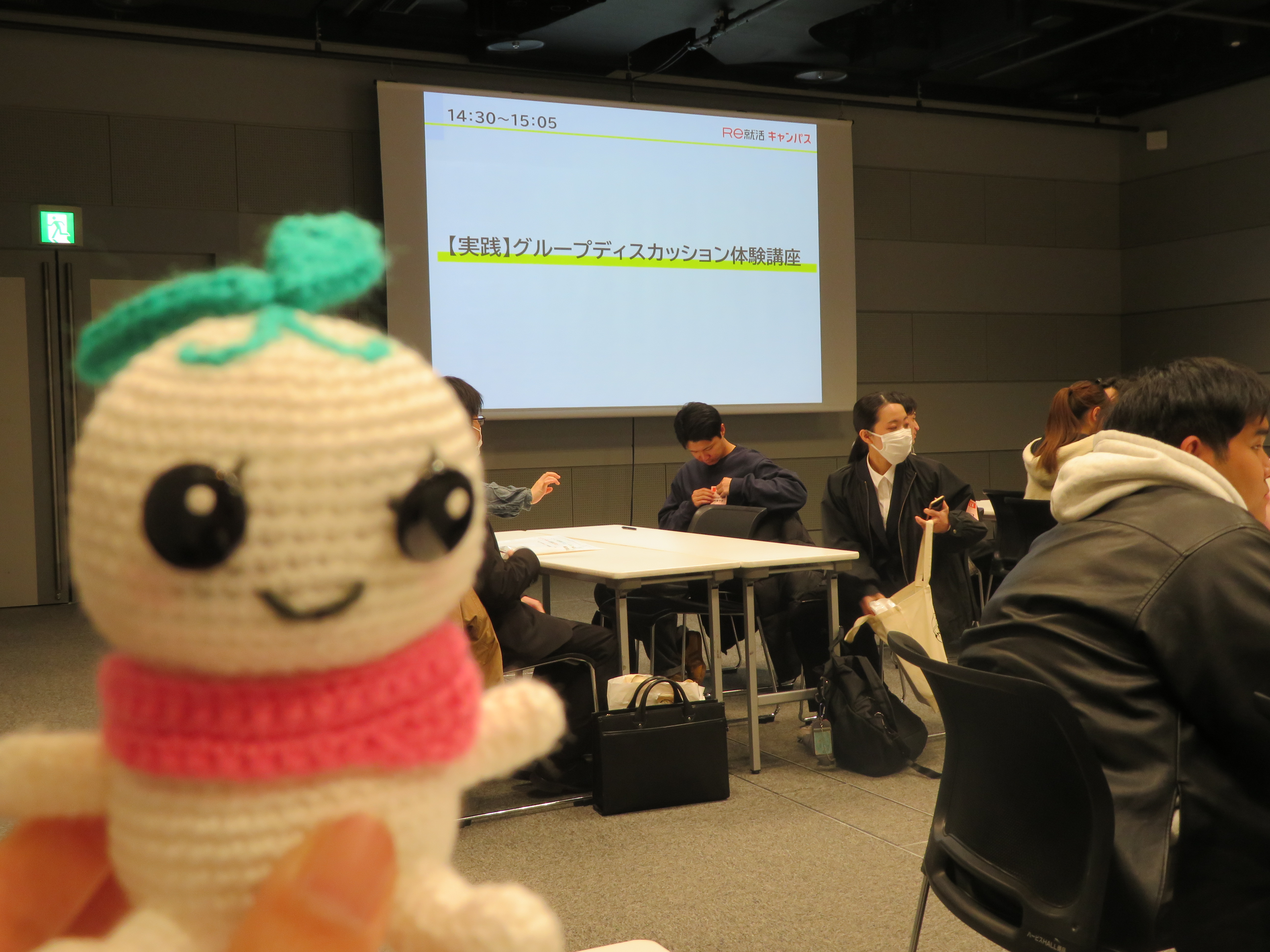 説明会の合間には、関西圏の他大学の学生とともに"グループディスカッション講座"を受講しました。